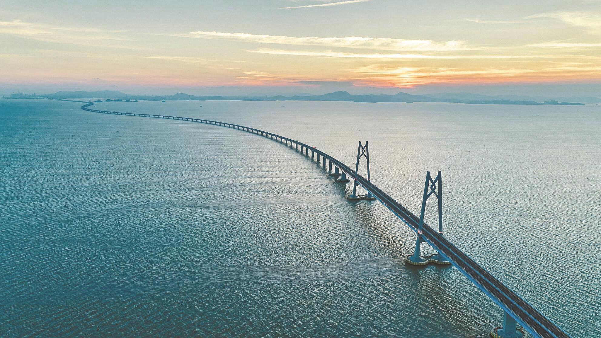 一桥看三地,梦想自由驰骋。港珠澳大桥是中华人民共和国境内一座连接香港、广东珠海和澳门的桥隧工程。位于广东珠江口伶仃洋海域内,为珠江三角洲地区环线高速公路南环段。港珠澳大桥因其超大的建筑规模、空前的施工难度和顶尖的建造技术而闻名世界。在这座大桥,我们能够举目远眺,欣赏三地美丽风光,让我们的梦想尽情翱翔。