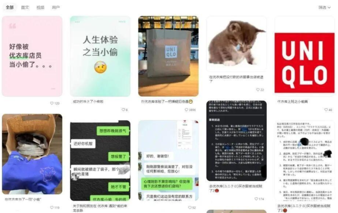 社交平台上关于在优衣库“被当小偷”的讨论。图源:网络